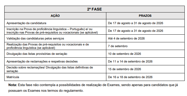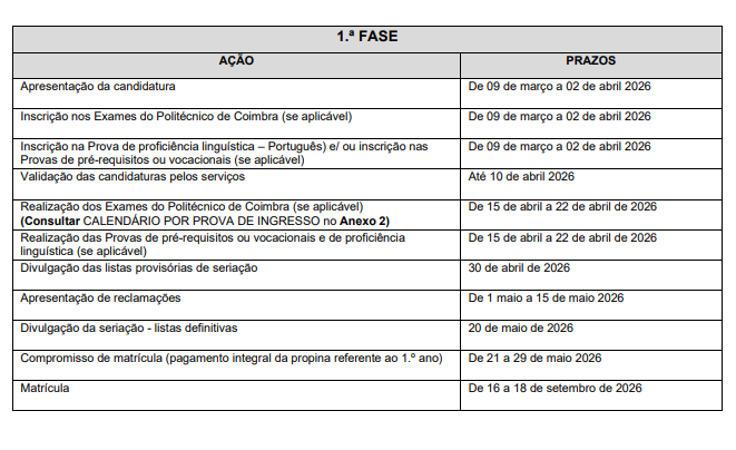 O concurso realiza-se em duas fases de candidatura, sendo que a 2º fase será realizada com as vagas sobrantes da 1º fase, caso existam. Poderá verificar-se a realização de uma faseadicional (em calendário a definir posteriormente).
